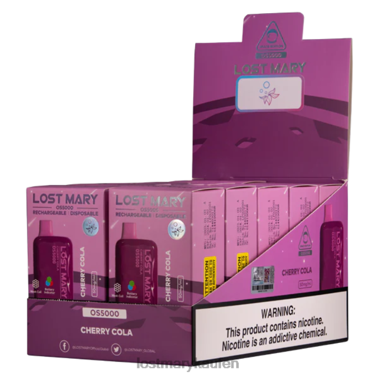 Geschmack: The Cherry Cola Lost Mary Vape verbindet einen traditionellen Cola-Erfrischungsgeschmack mit einer Prise Kirscharoma.