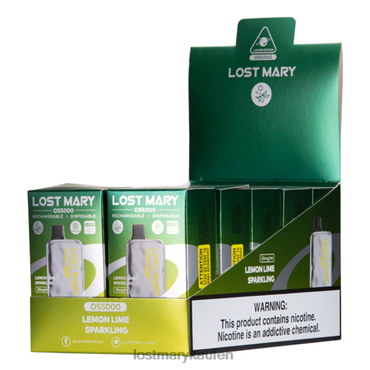 Geschmack: Der Lemon Lime Sparkling Lost Mary Lustre Vape bietet einen sprudelnden, erfrischenden Zitrus-Soda-Geschmack, der Zitronen- und Limettenaromen mit einem Hauch von Eis verbindet.
